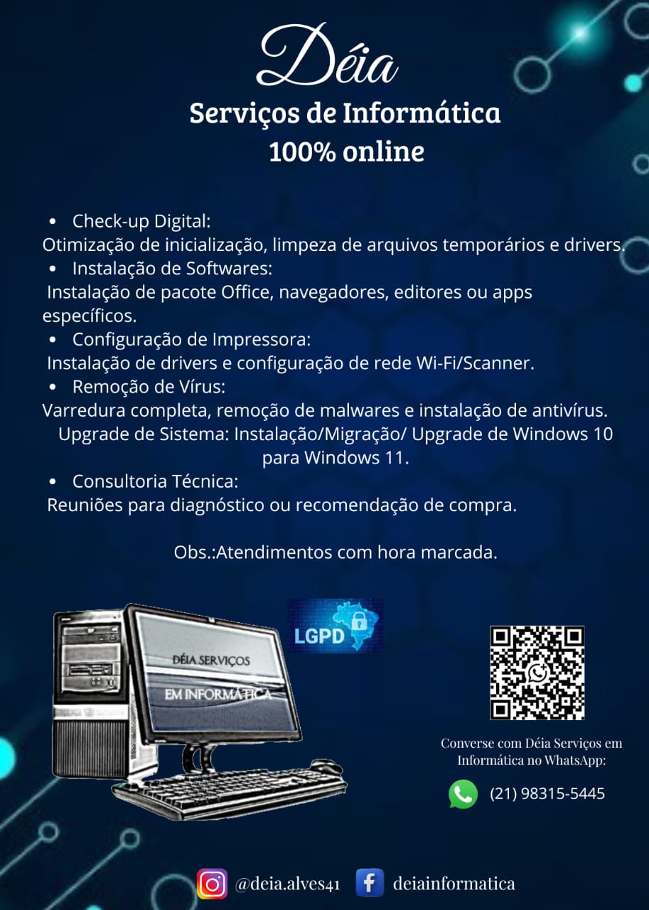 Atuamos exclusivamente com manutenção via acesso remoto. Esta mudança é fruto de uma análise cuidadosa do mercado. Diante da alta demanda por soluções digitais e do aumento instável nos custos de peças e logística, decidimos encerrar definitivamente nossos serviços de manutenção física e hardware.